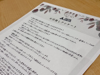 枚方市のN様邸よりお引渡しアンケートをいただきました^^